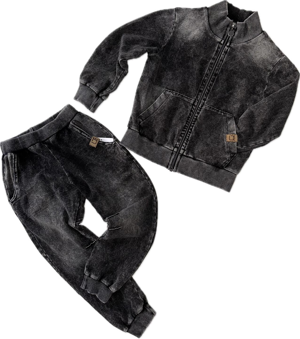Dres dziecięcy MIMI – czarny denim (104–140) Stylowy komplet dresowy od polskiej marki MIMI w unikalnym kolorze spranego czarnego denimu. Idealny zarówno na co dzień, jak i na specjalne okazje – wygodny, modny i praktyczny. Zestaw zawiera: • Bluza zapinana na suwak z kieszeniami i ściągaczami przy rękawach, • Spodnie dresowe z elastyczną gumką w pasie, kieszeniami i ściągaczami na nogawkach. Zalety produktu: • Polska produkcja – marka MIMI, • Wysokiej jakości, miękki materiał przyjazny dla skóry dziecka, • Modny design łatwy do zestawienia z innymi ubraniami, • Wygodny krój i praktyczne kieszenie. Dostępne rozmiary: 104, 140